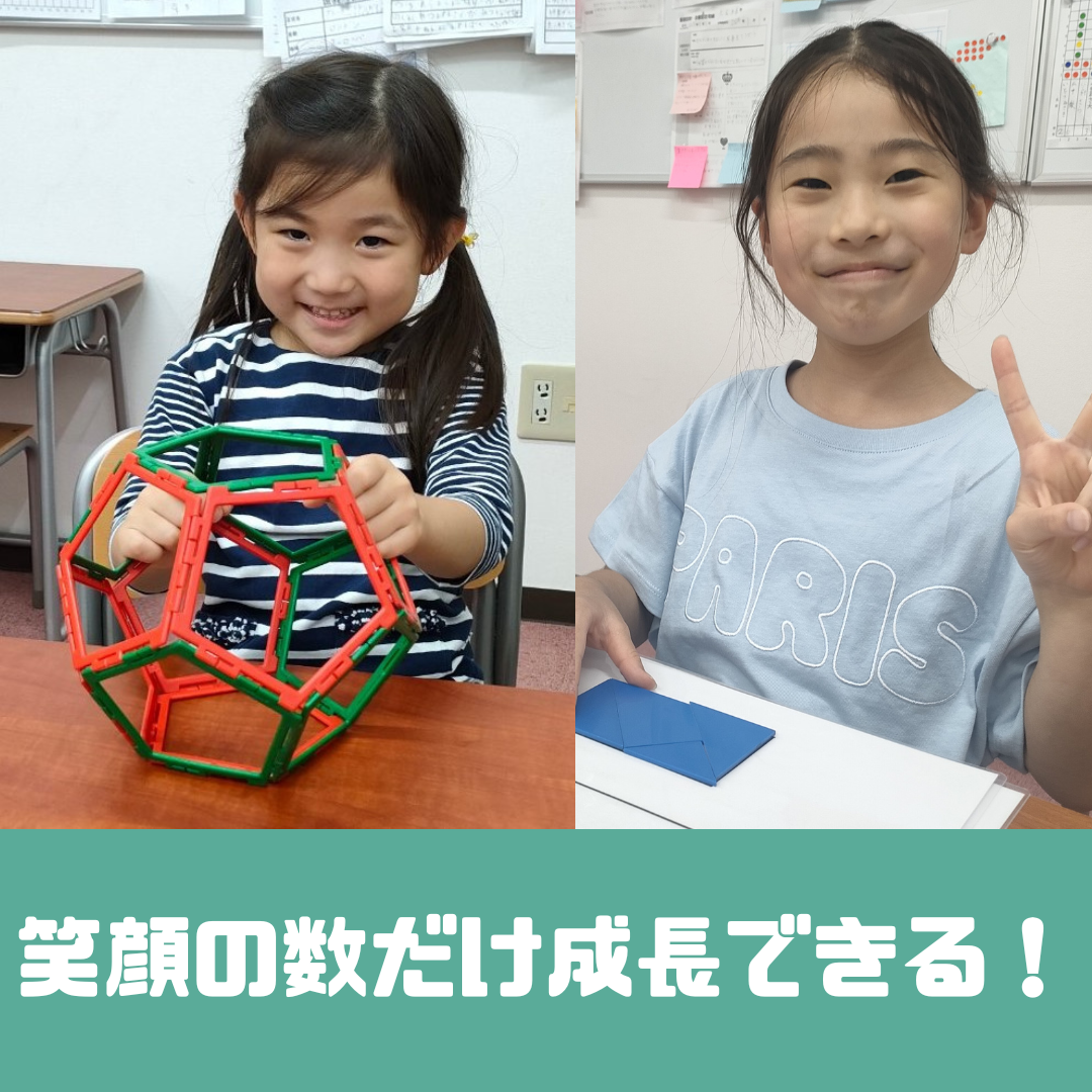 ③空間把握能力を身につける 具体物を使って経験を繰り返した後は、頭の中で「予想」していきます。過去の経験を思い起こし、今目の前にある事象を頭の中で動かしていきます。そうすることで、実物がなくても頭で考える力を身につけていきます。 「予想」した後は、「実験」して確かめます。頭の中で想像したものが、現実のものと結びついているかどうかを確認し、修正していきます。予想が当たった時の喜びや、外れた時の驚きをもとに、また1歩ずつ前進していくことができます。 空間把握能力を身につけることは、算数の図形問題に強くなるだけでなく、文章題や単位の問題、国語の文章読解に至るまで、様々な分野で能力を高めることができます。